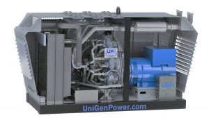 UniGen Power Inc. has developed the revolutionary UPI 1000TA – a one megawatt (1,000,000-watt) power generator that outperforms incumbent technology by virtually every metric. Designed from inception to burn clean natural gas, UPI’s proprietary radial engine-powered genset is low-emission, lightweight, compact, versatile, and mobile. With an all-inclusive operating cost of less than $0.05 per kWh, the UPI 1000TA is equally effective as a prime energy source or as emergency / standby power.